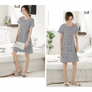 純棉條紋居家睡裙